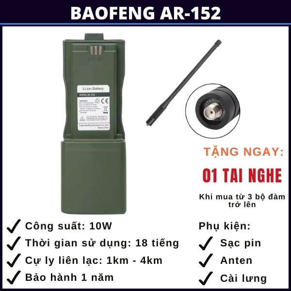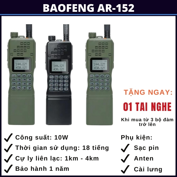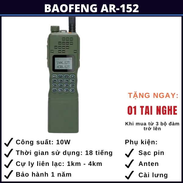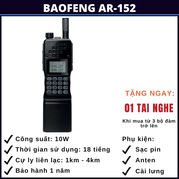 BỘ ĐÀM BAOFENG AR-152 GỒM: