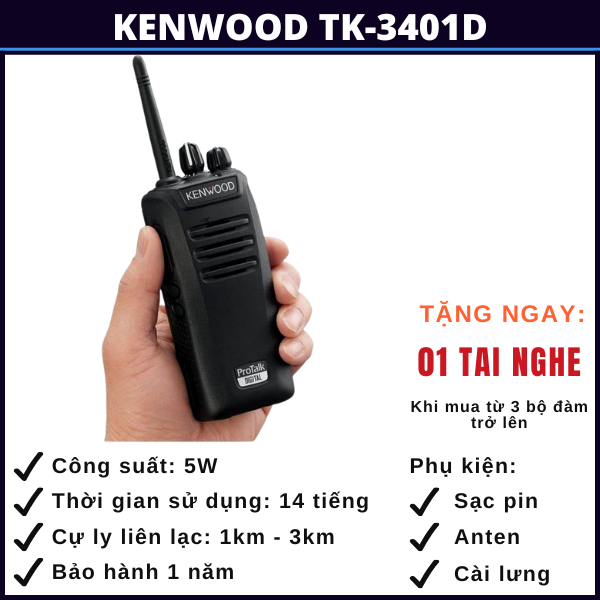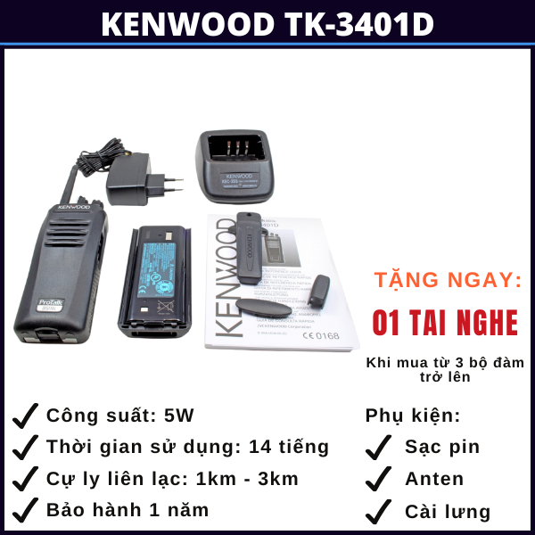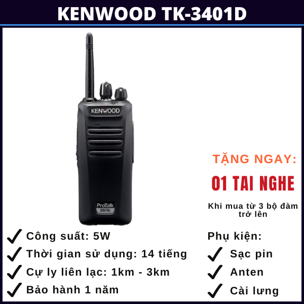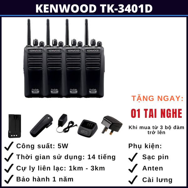 BỘ ĐÀM KENWOOD TK-3401D GỒM: