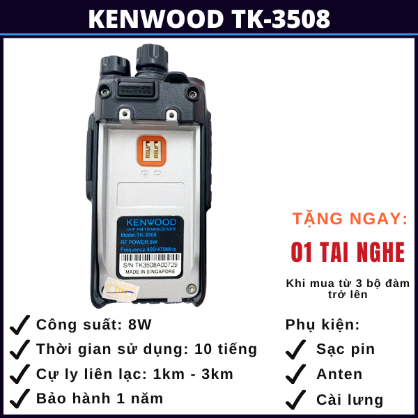 BỘ ĐÀM KENWOOD TK-3508 GỒM: